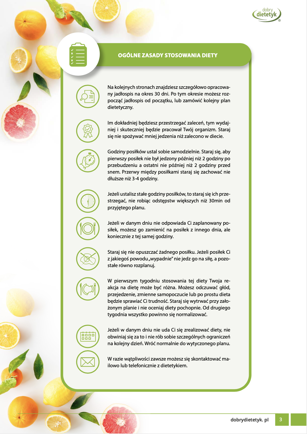 Obok szczegółowego planu dietetycznego otrzymasz również praktyczny poradnik korzystania z opracowanego planu dietetycznego.
