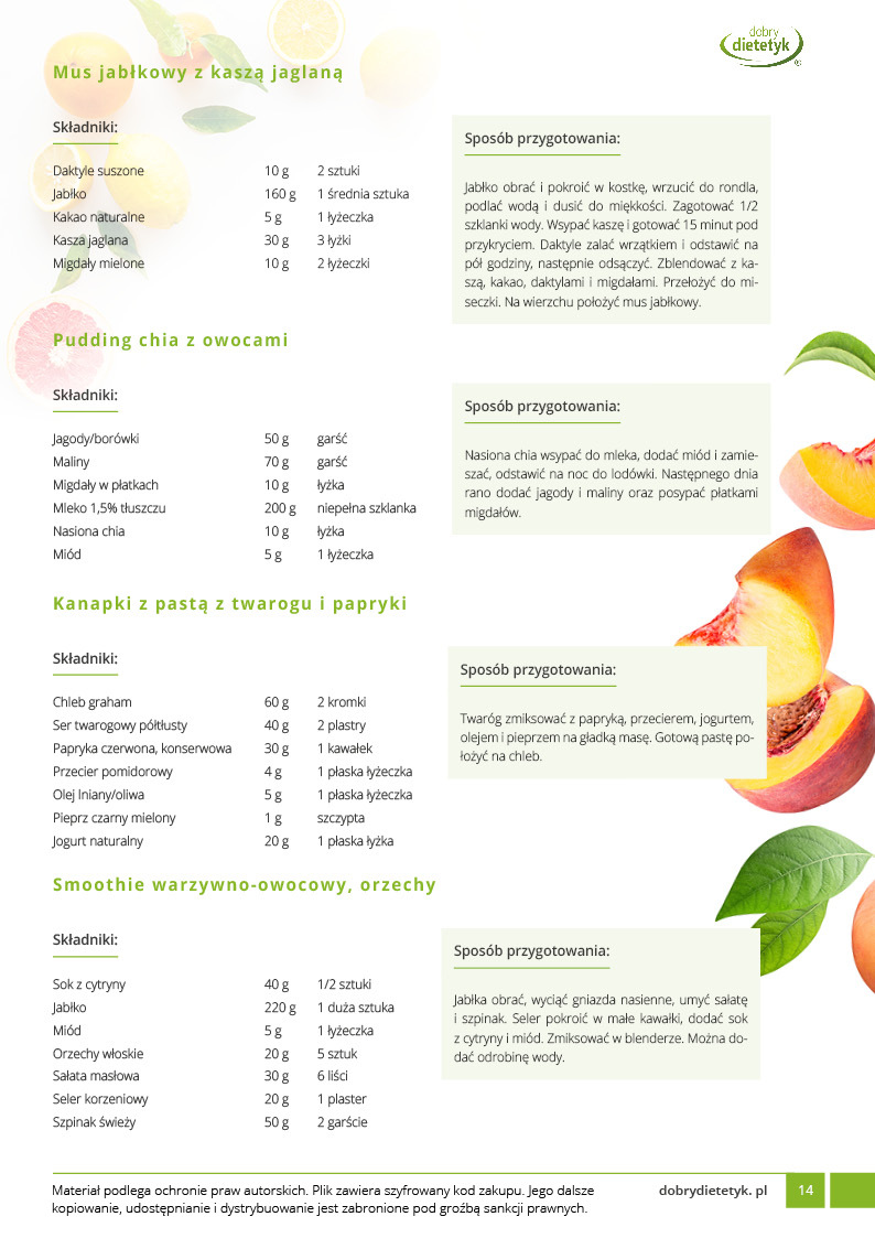 • w formie precyzyjnych jadłospisów wielodniowych (na każdy dzień miesiąca jest opracowany osobny jadłospis). Tutaj nie musisz zastanawiać się co zjeść każdego dnia, gdyż będziesz mieć dokładnie wszystko rozplanowane.