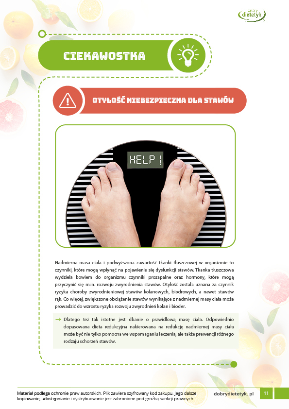 Specjalistyczny program dietetyczny wspomagający regenerację i odbudowę stawów. Przygotowana przez zespół dietetyków klinicznych dieta zawiera swoim składzie składniki bogate w substancje odbudowujące chrząstkę oraz maź stawową a także substancje o działaniu przeciwzapalnym. Dieta pozwala ograniczać postęp choroby zwyrodnieniowej oraz zapalenia reumatoidalnego, działając przeciwzapalnie, zapobiegając degradacji tkanek, a także pozwalając kontrolować masę ciała, co ma szczególne znaczenie w przypadku stawów podatnych na największe przeciążenia. W diecie zwrócono szczególną uwagę na podaż pełnowartościowego białka, wapnia, witaminy D, C, kwasów omega-3 a także antyoksydantów takich jak witamina A, C, E oraz cynku i selenu.