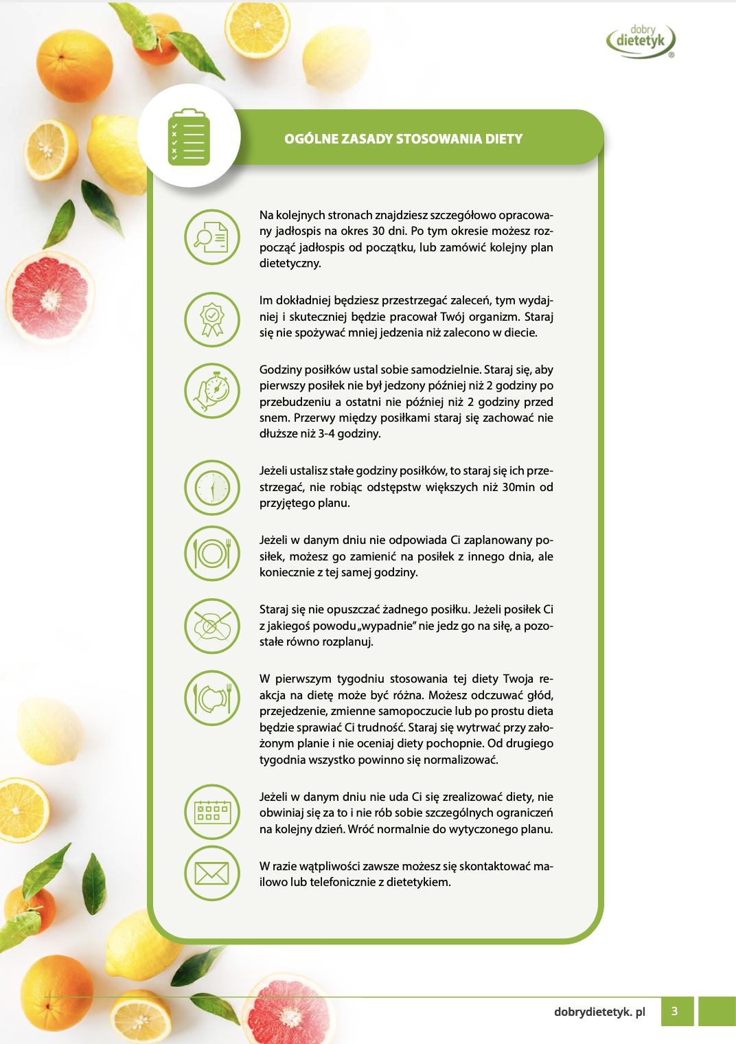 Obok szczegółowego planu dietetycznego otrzymasz również praktyczny poradnik korzystania z opracowanego planu dietetycznego.
